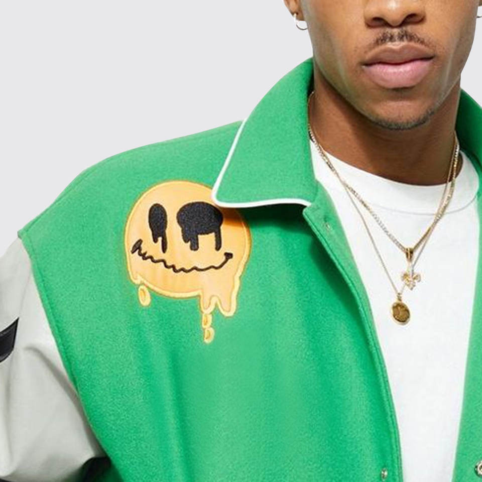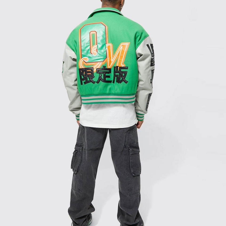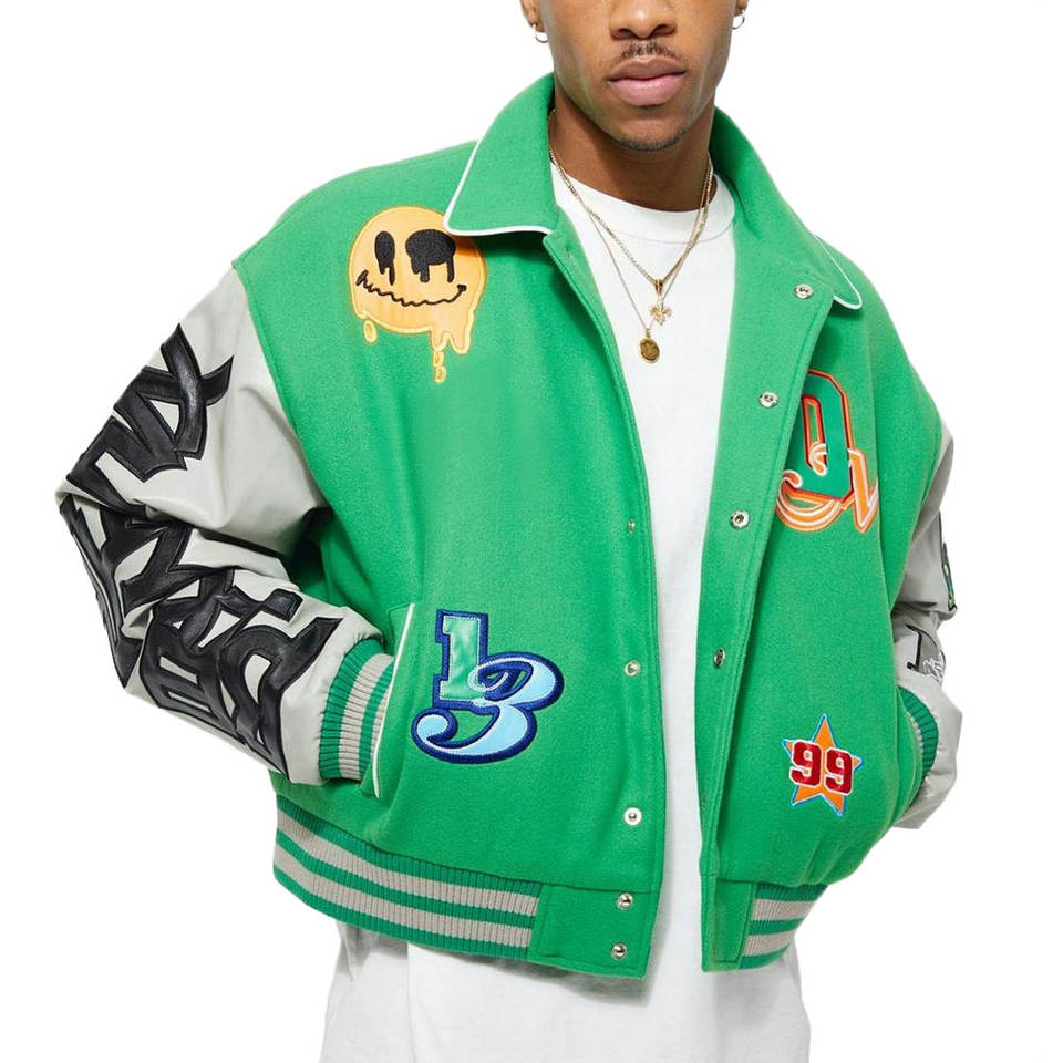 เสื้อแจ็กเก็ตทีมวิทยาลัยแบบกำหนดเองคอปกแบบถักนิตติ้งกระดุมสแน็ปอินนุ่มภายในเหมาะสำหรับเครื่องแบบลำลองและทีมผู้จำหน่าย OEM