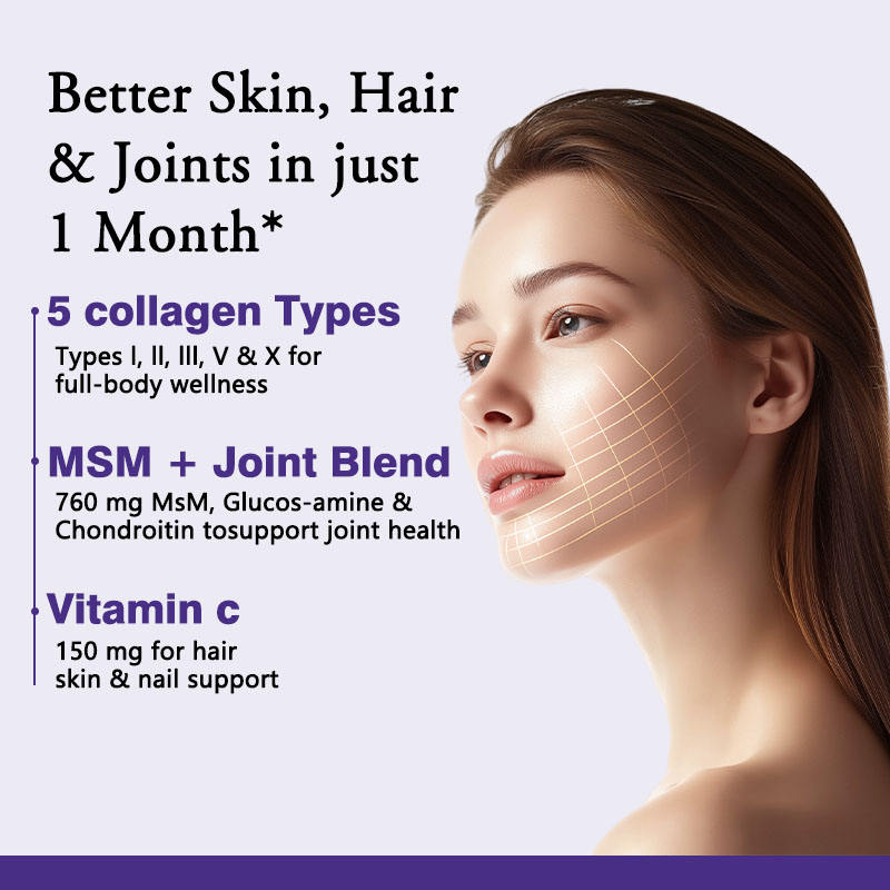 เจริญเติบโตของเส้นผม, ผิวกระจ่างใส, ผิวชุ่มชื้น, การสนับสนุนด้านสุขภาพลำไส้, การเจริญเติบโตของเล็บ, รองรับกระดูกและข้อต่อ