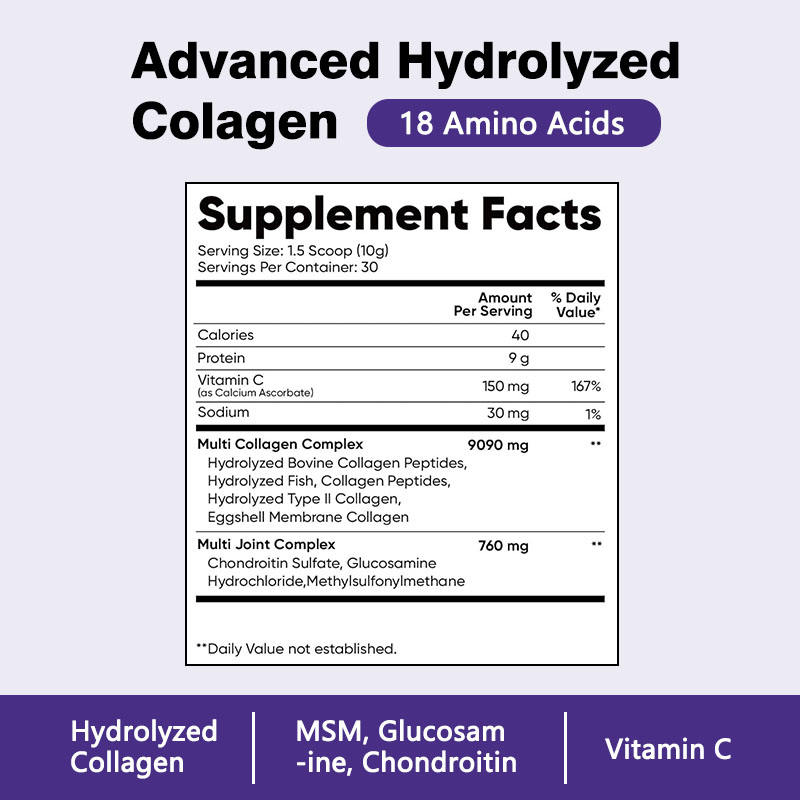 โปรตีน, วิตามินซี, โซเดียม, มัลติคอลลาเจนคอมเพล็กซ์, หลายข้อต่อที่ซับซ้อน