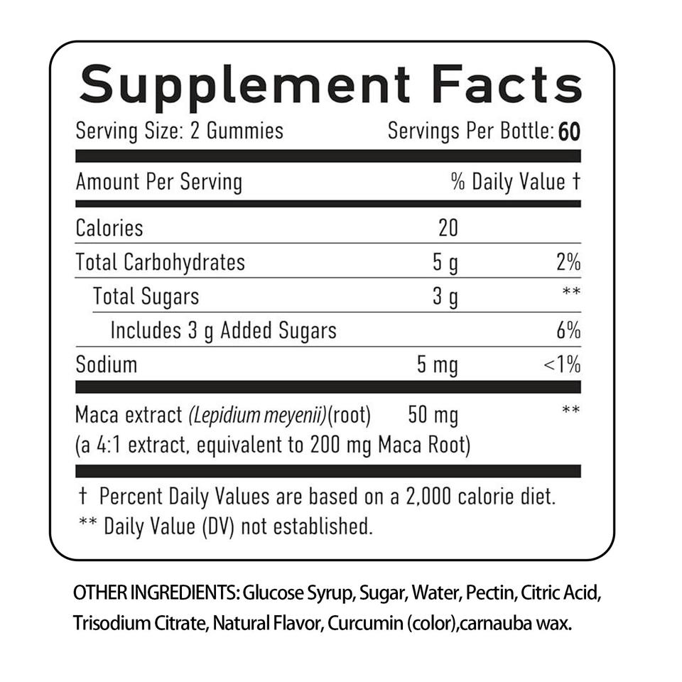 ผู้ผลิต OEM วิตามินกัมมี่รากมาคา สำหรับสุขภาพระบบสืบพันธุ์และเสริมภูมิคุ้มกันในผู้ใหญ่ ปราศจาก GMO ผ่านการทดสอบโดยบุคคลที่สาม อาหารเสริมที่ปรับแต่งได้