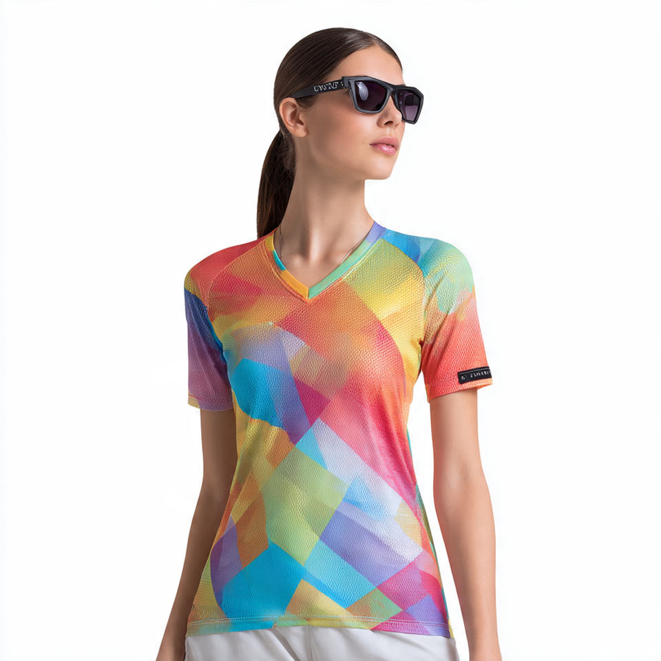 เสื้อเจอร์ซีย์ตาข่าย OEM สำหรับใส่เล่นน้ำชายหาด ผลิตจากโพลีเอสเตอร์ 100% เสื้อเจอร์ซีย์ตาข่ายคุณภาพสูงสำหรับผู้หญิง คอวี
