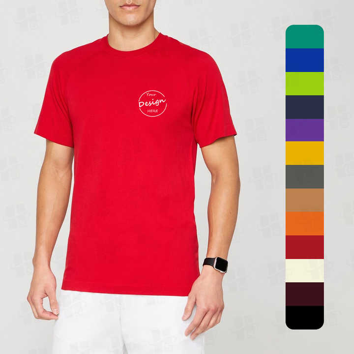 เสื้อยืดผู้ชายเสื้อคอตตอนแขนสั้นเข้ารูปพิมพ์โลโก้ตามสั่ง