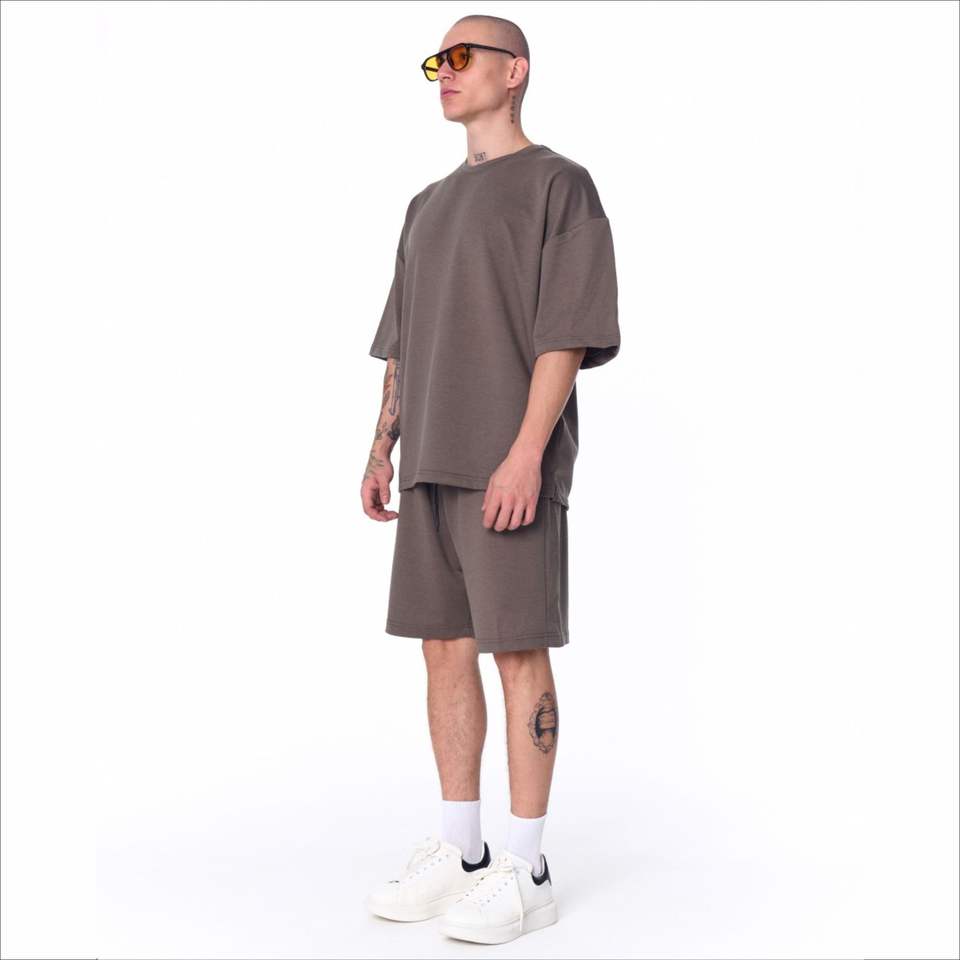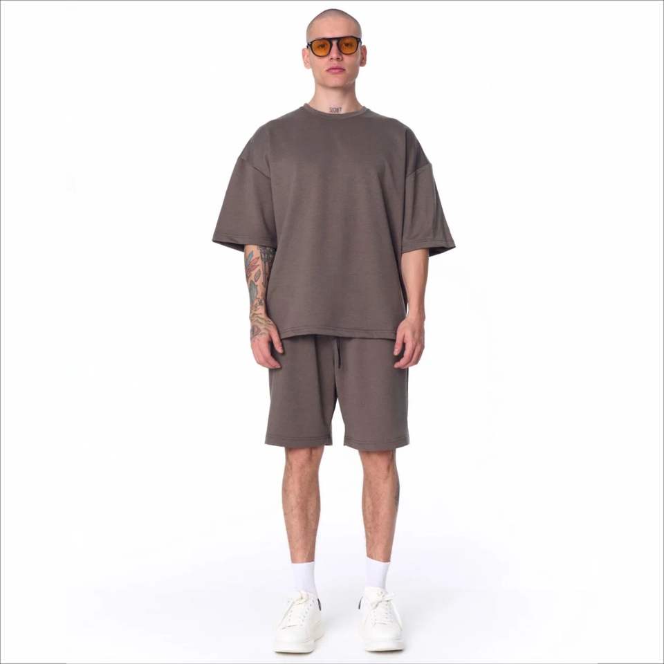 ชุดเซ็ตเสื้อยืดโอเวอร์ไซส์สองชิ้น OEM กางเกงขาสั้น ชุดลำลองผู้ชาย 2 ชิ้น เสื้อผ้าฤดูร้อน สตรีทแวร์ เสื้อยืดและกางเกงขาสั้นสำหรับผู้ชาย