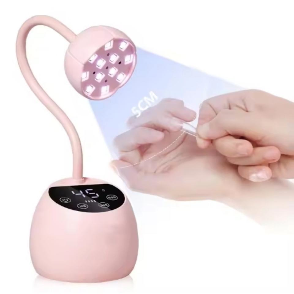โคมไฟยูวีแบบยืดหยุ่นสำหรับโต๊ะทำงาน OEM พร้อมพอร์ต USB สำหรับอบเจลทำเล็บ แขนโคมไฟปรับงอได้ หน้าจอ LCD ไร้สาย ขนาดเล็ก หลอดไฟยูวีแอลอีดี