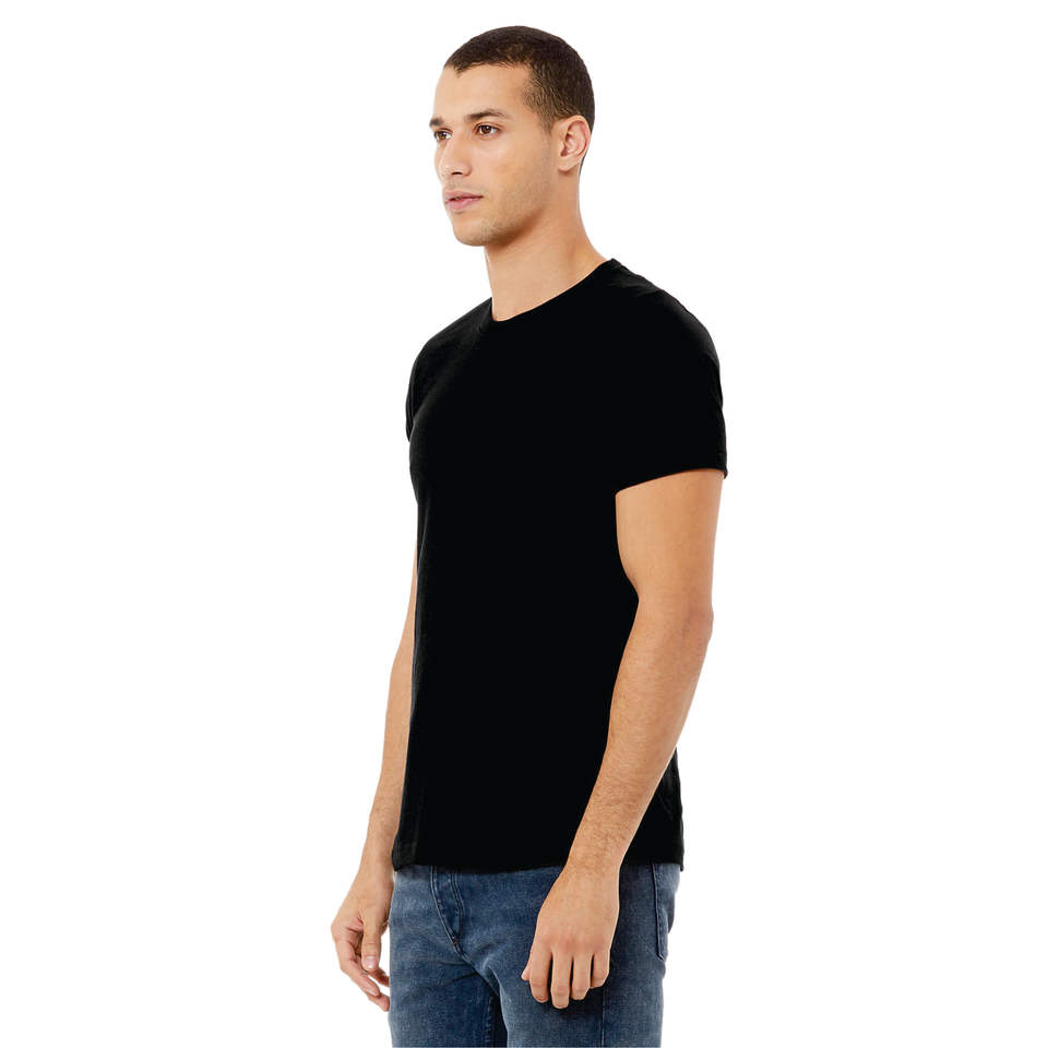 OEM เสื้อยืดสีดำใส่ได้ทั้งชายและหญิง52% ผ้าฝ้ายคอมบ์48% โพลีแขนสั้น4.2ออนซ์สไตล์ทางการ