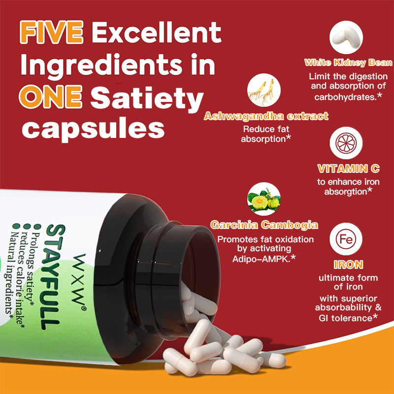แคปซูลอาหารเสริมจากพืชสำหรับผู้ใหญ่ ผลิตโดย OEM ปราศจาก GMO ได้ผลทางคลินิก ช่วยให้ความอิ่มท้อง