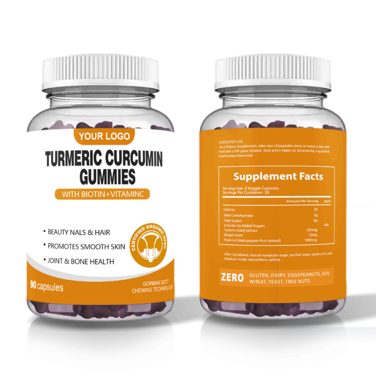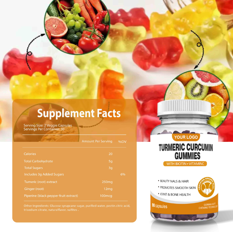 อาหารเสริมกัมมี่ขมิ้นชันและขิงวีแกน OEM สำหรับผู้ใหญ่ - ช่วยเสริมภูมิคุ้มกัน 60 กัมมี่/ขวด