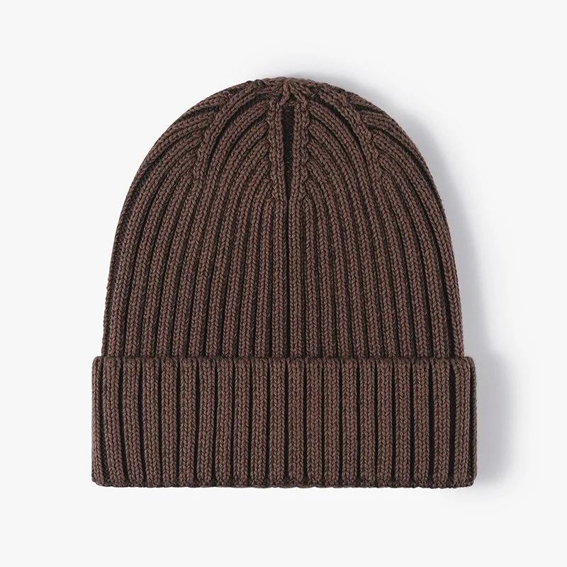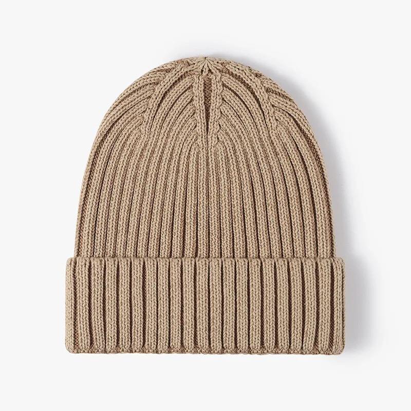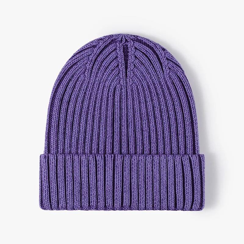 หมวกไหมพรมอะคริลิกสีม่วงหลากสีแบบหนาสำหรับฤดูหนาว แบบ unisex พร้อมโลโก้ปัก หมวกบีนนี่แบบริบ รับทำโลโก้ตามสั่ง