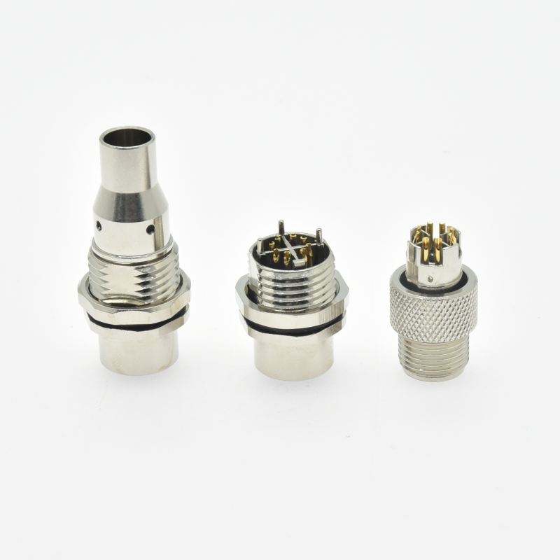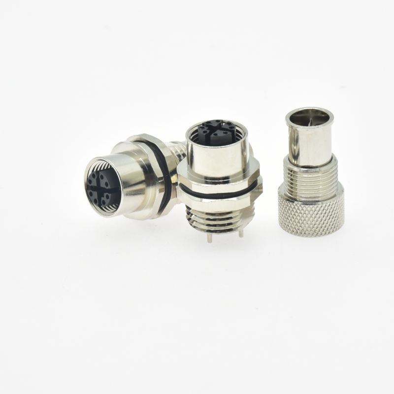 ขั้วต่อแบบวงกลมปลั๊ก M12กันน้ำ OEM ตัวยึดแผง PCB ขั้วต่อสายเคเบิลกันน้ำ8ขาตัวเมีย