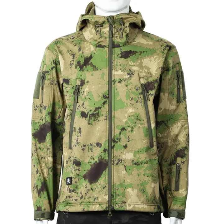 เสื้อแจ็คเก็ตทหารลายพรางป่ากันน้ำกันลมสำหรับล่าสัตว์และเอาชีวิตรอดกลางแจ้งในสภาพอากาศหนาวเย็น แบบไร้เสียง