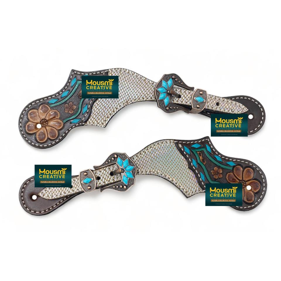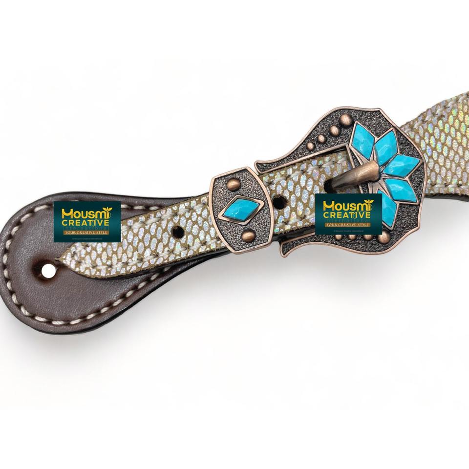 Western Horse Women's Spur Straps With Holographic Snake Skin TextureProduct name