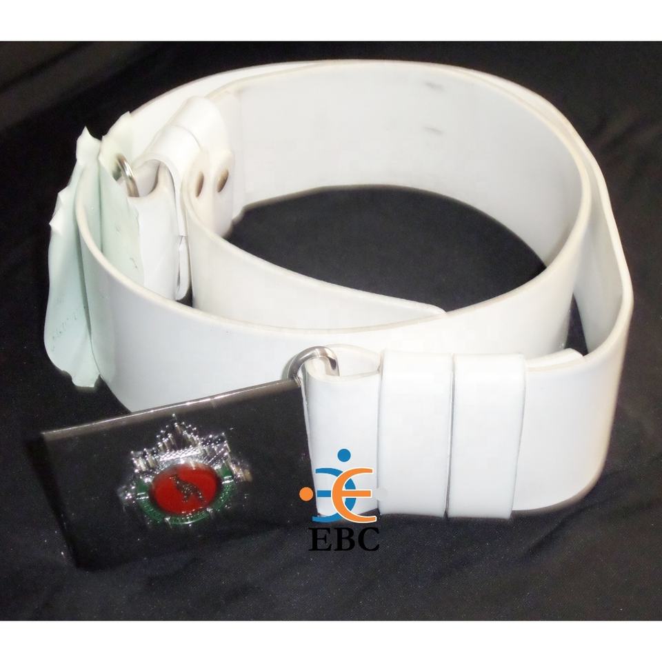 เข็มขัดพิธีการแบบปรับได้ ทำจากหนัง PVC สีขาว OEM คุณภาพสูง ผลิตตามสั่ง พร้อมโลโก้สั่งทำ หัวเข็มขัดโลหะสีทอง