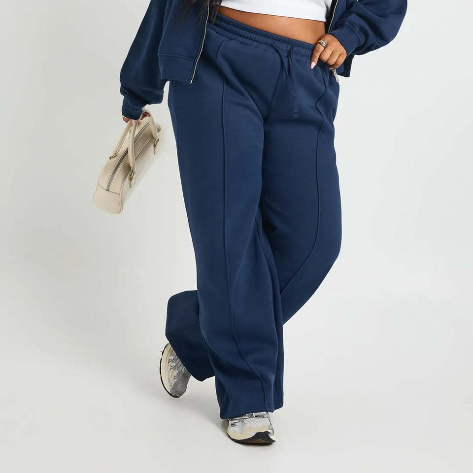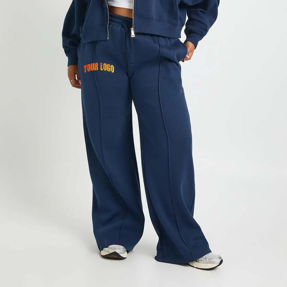 กางเกงวอร์มผู้หญิงผ้าคอตตอนผสม 100% คุณภาพสูง สีกรมท่า ทรงขาตรง เอวยางยืด ระบายอากาศดี ขายส่ง OEM