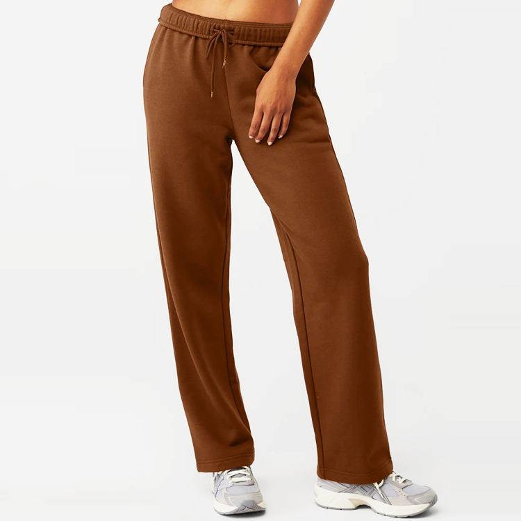 กางเกงวอร์มขาตรงสำหรับผู้หญิงกางเกงวิ่งเอวยางยืดทำจากผ้าฝ้ายโพลีเอสเตอร์ออกแบบได้ตามต้องการ