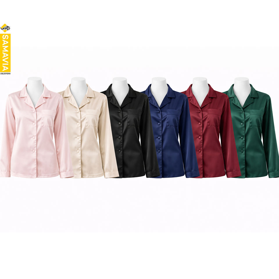 ชุดนอนผ้าซาตินพิมพ์ลายสำหรับผู้หญิง แบบแห้งเร็ว ระบายอากาศได้ดี แฟชั่น OEM ขายส่ง รับทำโลโก้ตามสั่ง ชุดนอนฤดูใบไม้ผลิสำหรับผู้หญิง