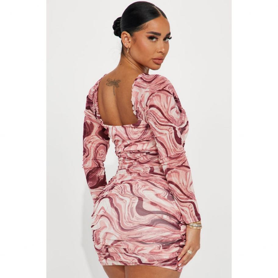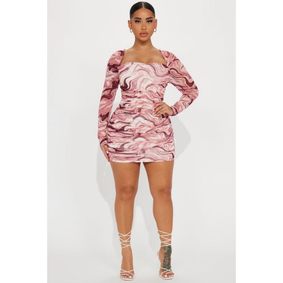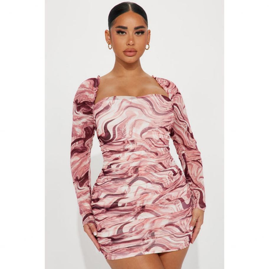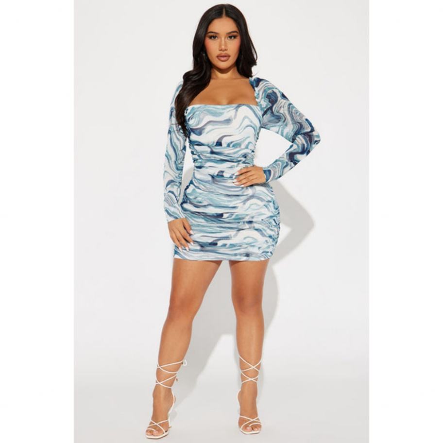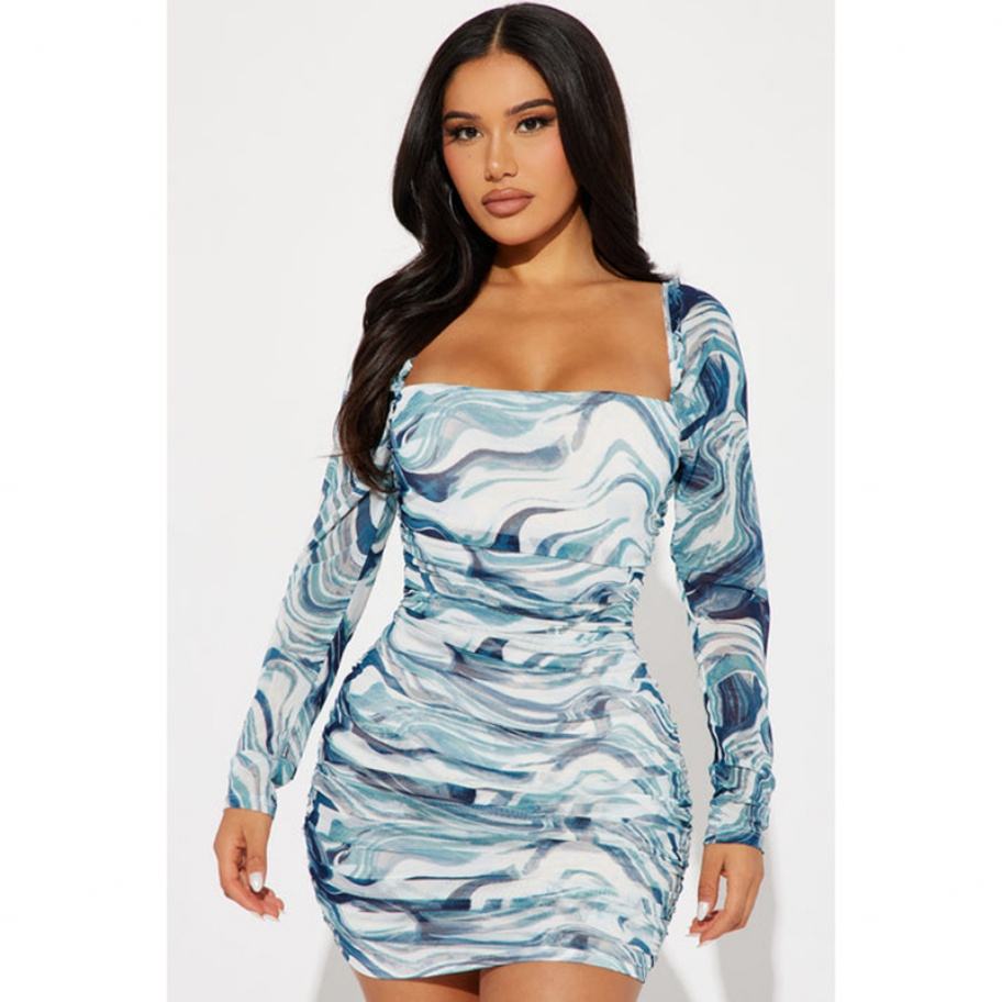 ชุดเดรสลำลองผู้หญิงคอเหลี่ยมแขนยาวผ้าตาข่ายโลโก้สั่งทำขายส่ง OEM