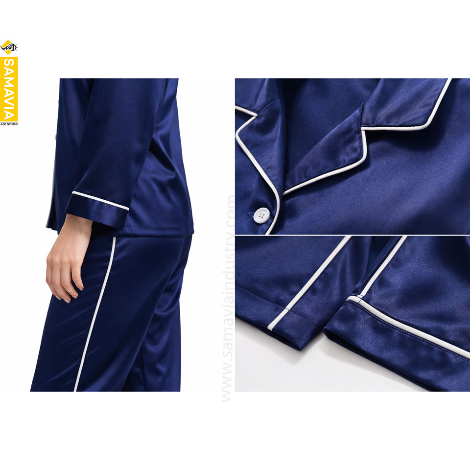 ชุดนอนผ้าซาตินพิมพ์ลายสำหรับผู้หญิง แบบขายส่ง OEM พร้อมปักโลโก้ตามสั่ง เนื้อผ้าคอตตอนนุ่ม 2 ชิ้น ชุดนอนฤดูใบไม้ผลิ ปักด้วยเครื่องจักร