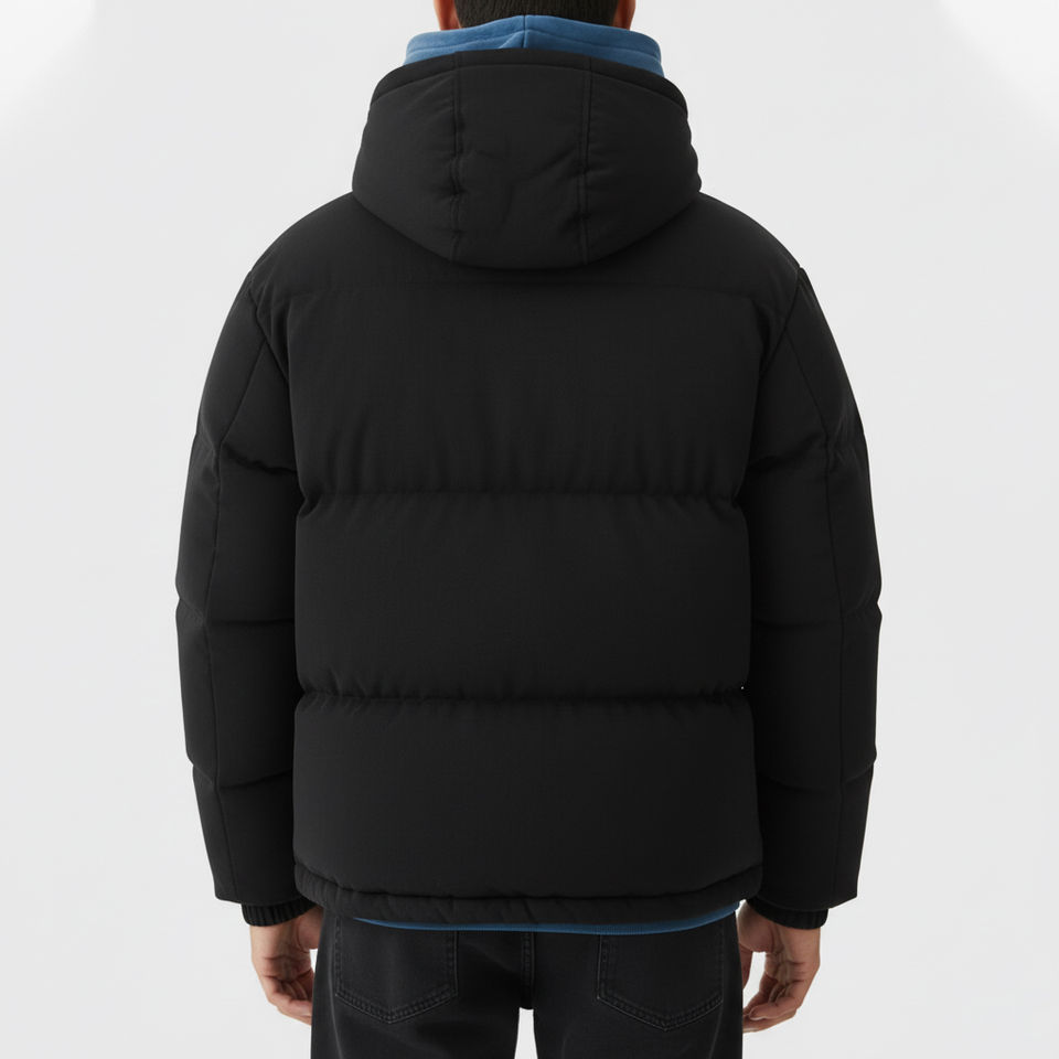 แจ็กเก็ตแบบมีฮู้ดสำหรับผู้ชายผ้าฝ้ายสีทึบผ้าควิลท์มีฮู้ดสำหรับฤดูหนาวผลิตตามสั่ง