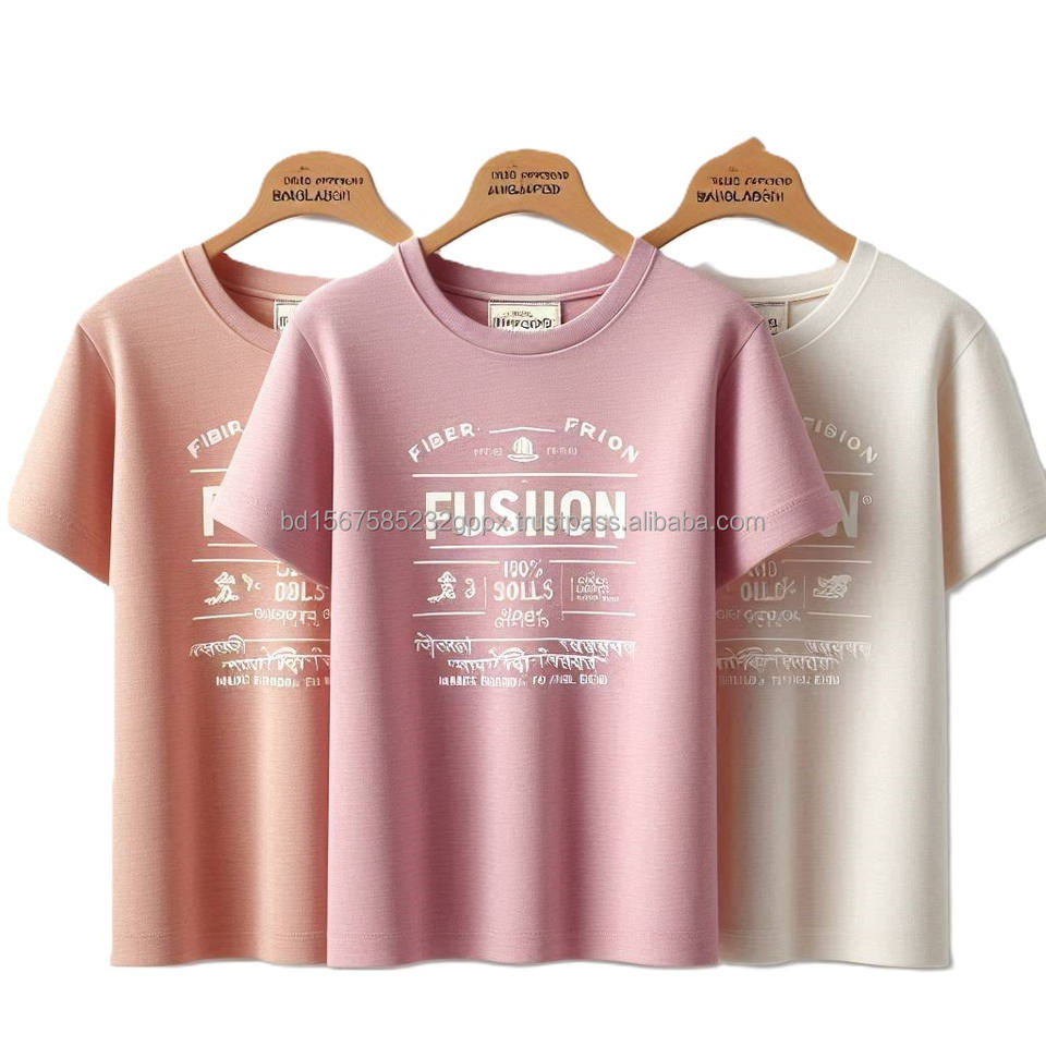 เสื้อยืดผ้าฝ้ายถักแบบสั่งทำสำหรับเด็กผู้หญิงเสื้อยืดลำลองคอกลมแขนสั้นพิมพ์ลายโลโก้สีพื้น