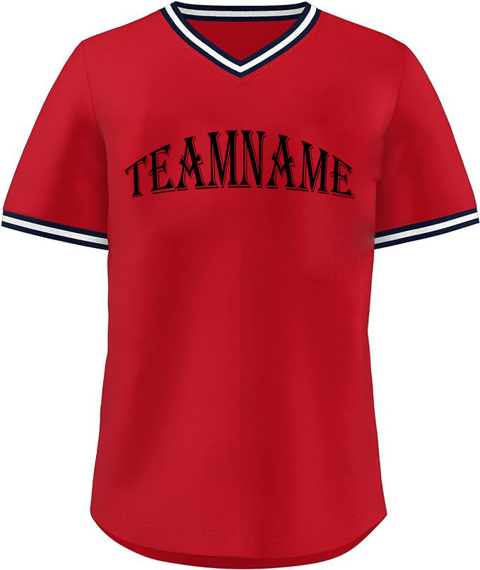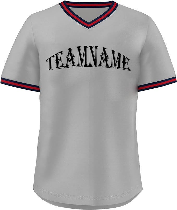 เสื้อเบสบอลของผู้ชายเสื้อคอวีผ้าโพลีเอสเตอร์แบบ100% ระบายอากาศได้ดีแห้งเร็วเสื้อเบสบอลแบบสวมหัว