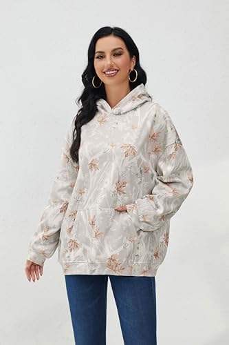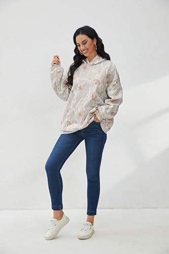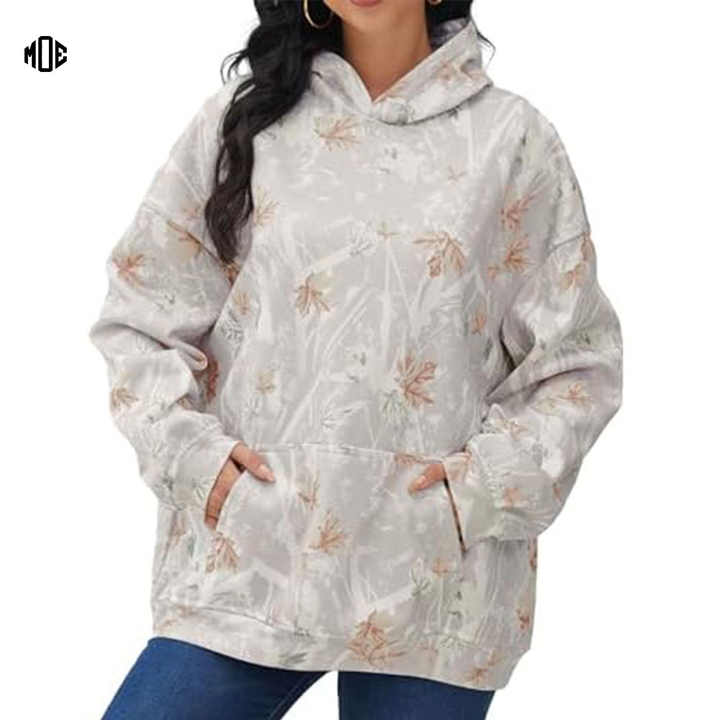 เสื้อมีฮู้ดแบบสวมหัวพิมพ์ลายดอกไม้สำหรับผู้หญิงเสื้อสเวตเชิ้ตแนวสตรีทผ้าคอตตอนผสมเครื่องแต่งกายมีฮู้ดสำหรับฤดูใบไม้ร่วงขนาดใหญ่ออกแบบได้ตามต้องการ