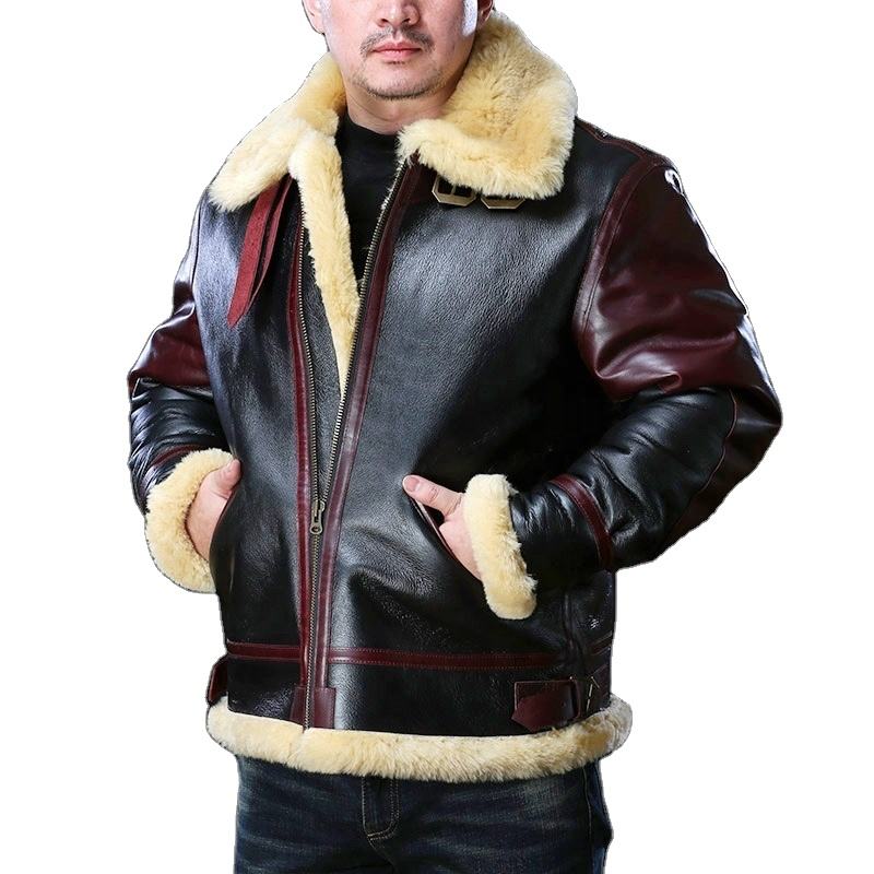 แจ็คเก็ตหนังแท้บุขนแกะคุณภาพพรีเมียมสำหรับฤดูหนาว แบบยูนิเซ็กซ์ ผลิตตามสั่ง ขายส่ง OEM