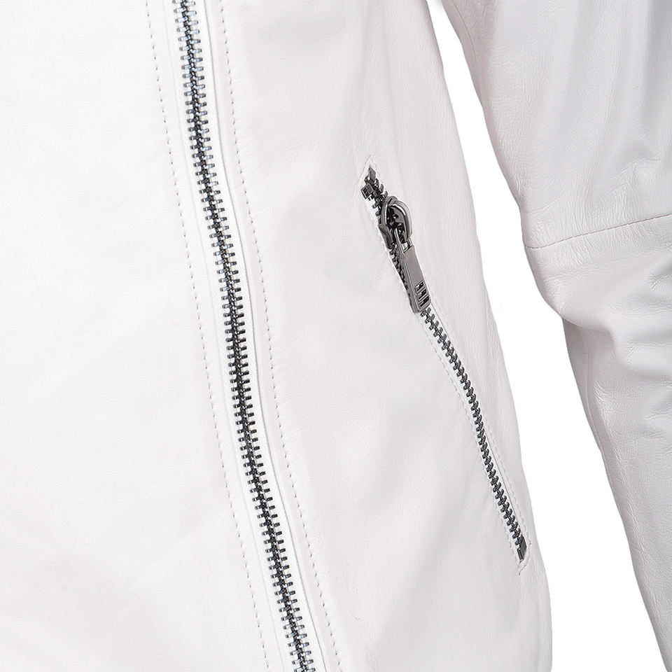 เสื้อแจ็กเก็ตหนังสีขาวสำหรับผู้ชายเสื้อแจ็กเก็ตมอเตอร์ไซค์โลโก้ตามสั่ง