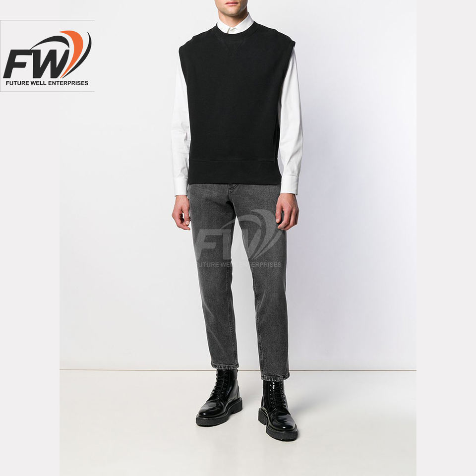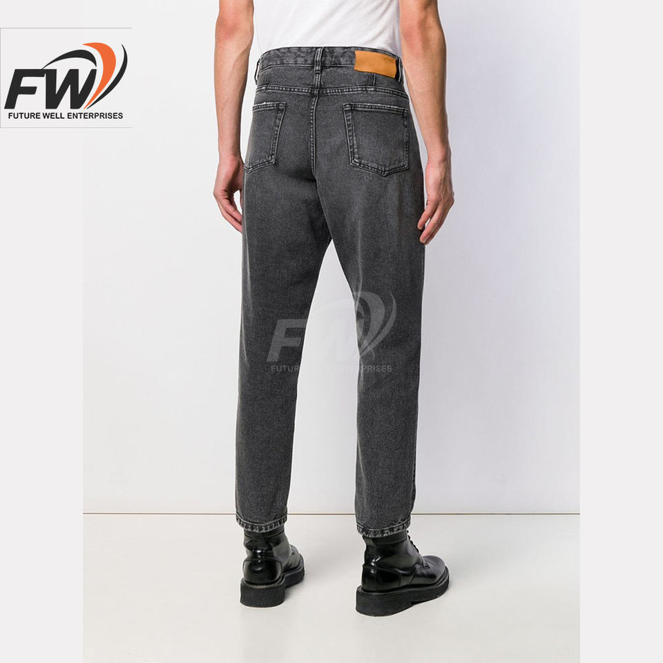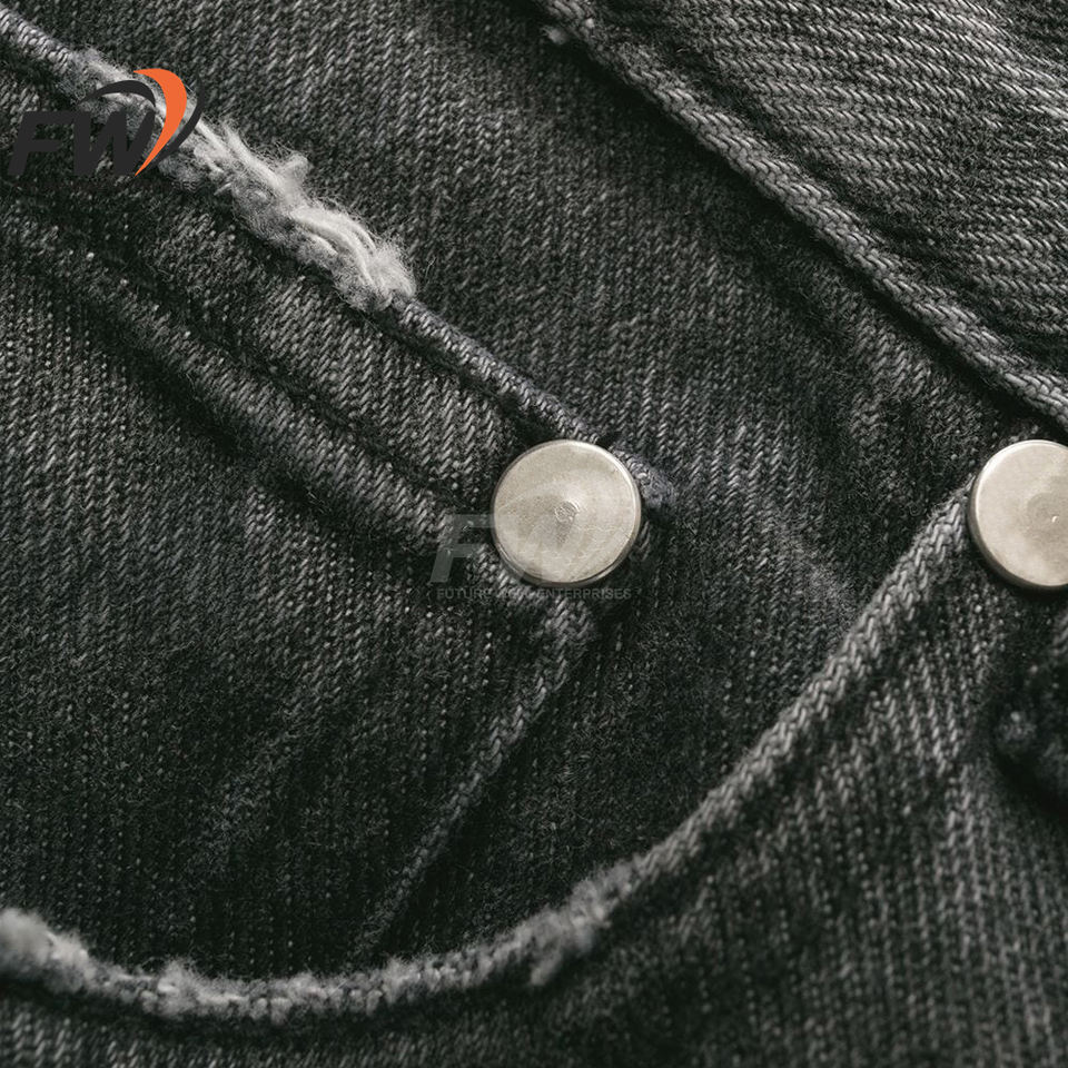 กางเกงยีนส์เดนิมคุณภาพสูงสำหรับผู้ชาย แบบขายส่ง OEM ปรับแต่งได้ แฟชั่นสไตล์ขาดๆ ทรงตรงแบบซ้อนกัน สีสโตนวอช สำหรับทำงาน
