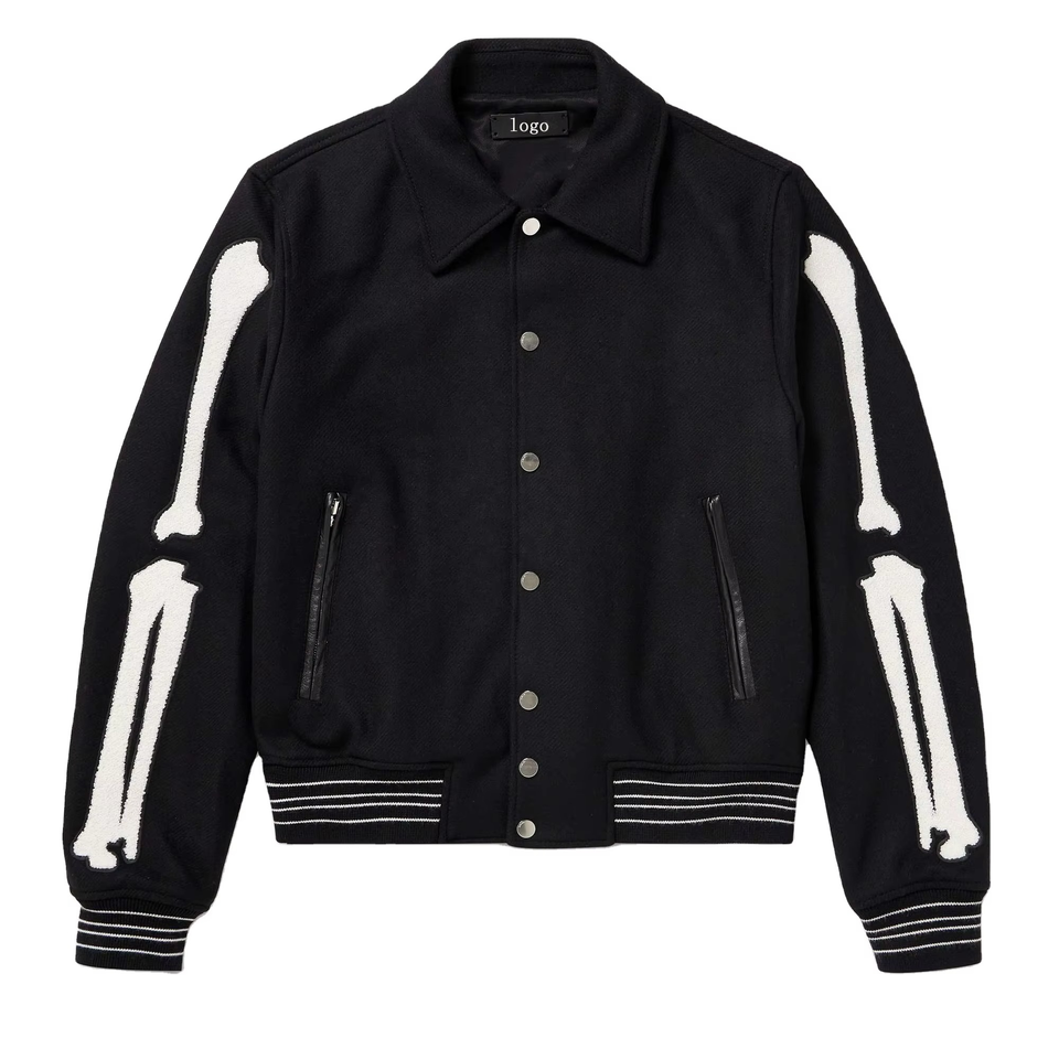 OEM Wholesale High Quality Men's Letterman and Basketball Bomber Jacket Black Custom Logo Design Blank Baseball Varsity Jacket