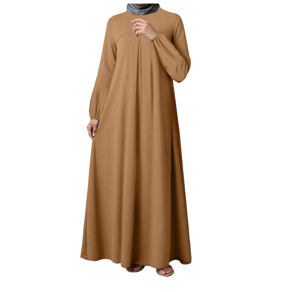 ขายส่ง OEM ชุดอาบายะห์ผ้าไหมคุณภาพสูงสำหรับผู้หญิงมุสลิมตะวันออกกลาง แขนยาว ระบายอากาศได้ดี ผ้าโพลีเอสเตอร์จับจีบ สีพื้น