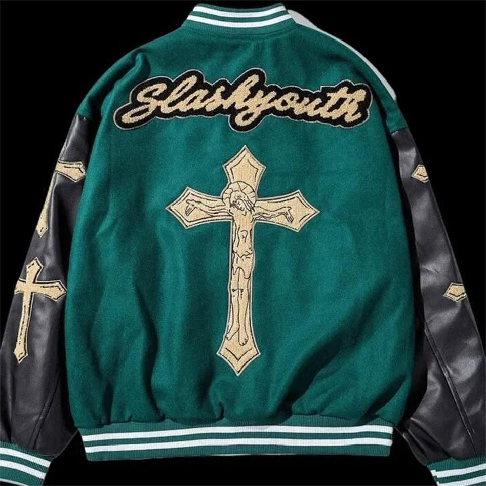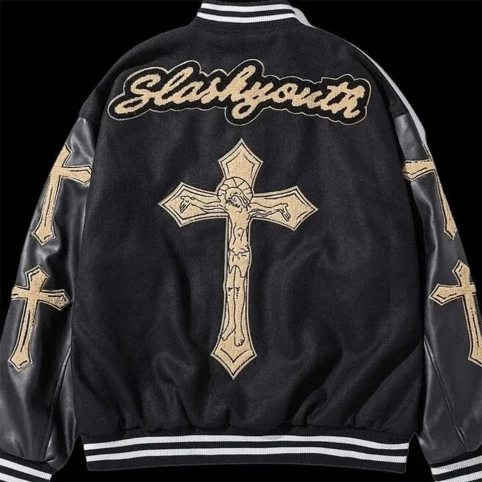 เสื้อแจ็กเก็ตเบสบอลแขนยาวสำหรับผู้ชายเสื้อทีมโรงเรียนปักลายตัวอักษรคุณภาพสูงงานตามสั่ง