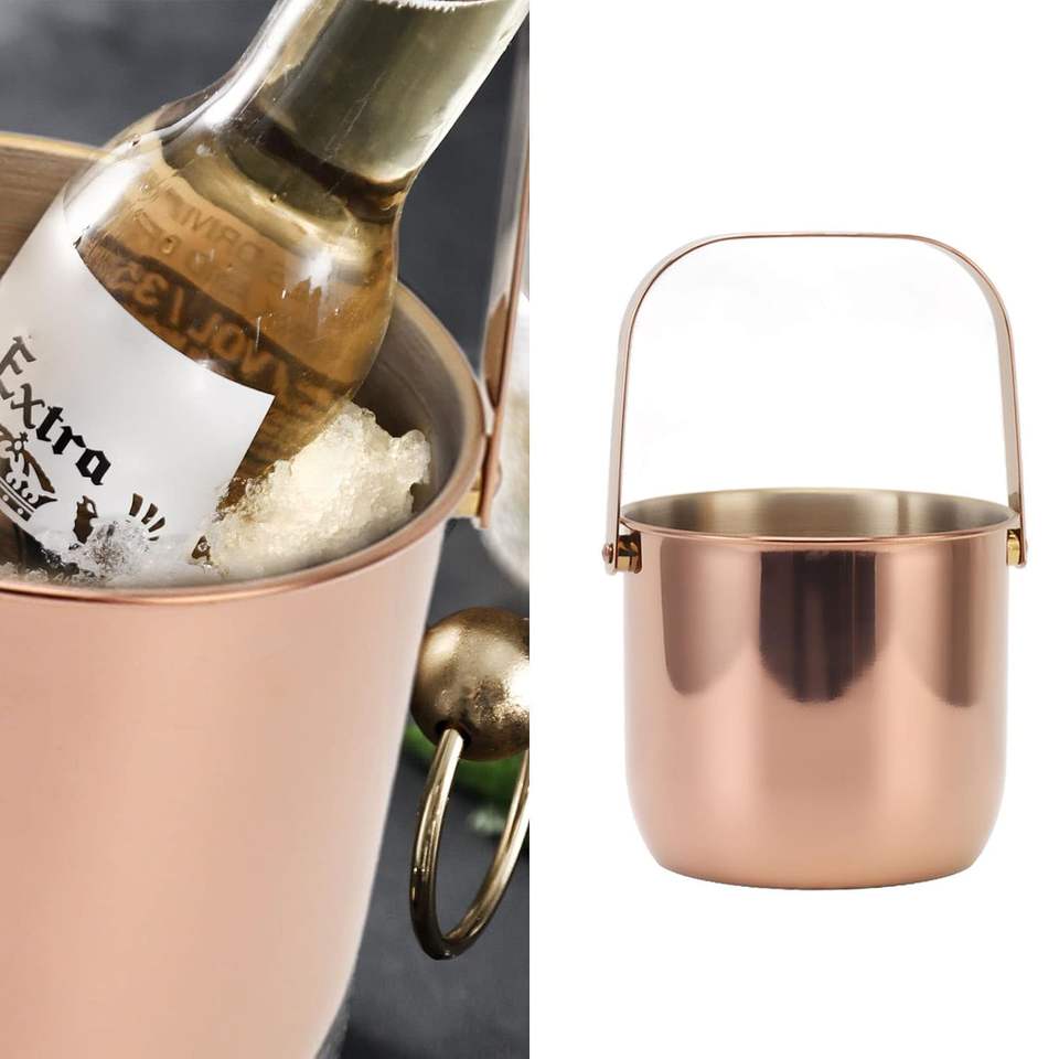 ถังแช่ไวน์และค็อกเทลสแตนเลสสตีลสองชั้นเก็บความเย็น ขนาดใหญ่ สีโรสโกลด์ สำหรับขายส่ง OEM ระดับพรีเมียม