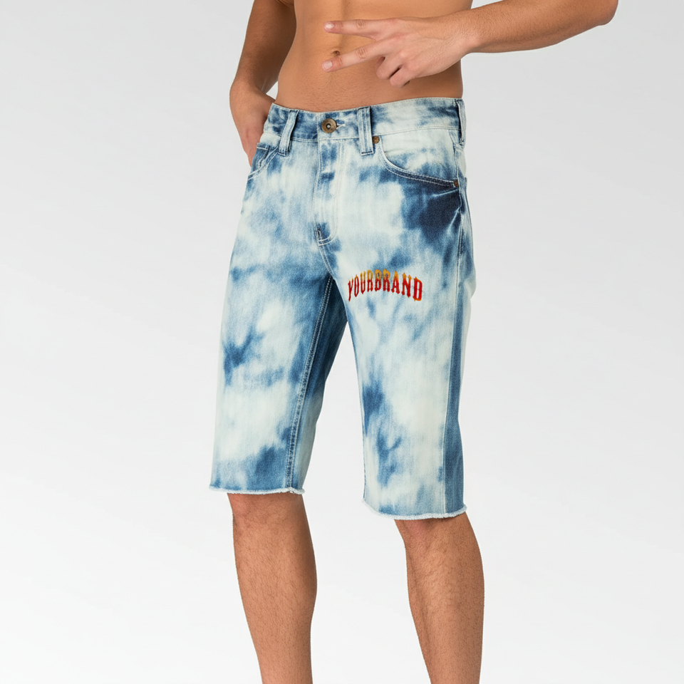 กางเกงยีนส์ขาสั้นลำลองผู้ชายแบบขายส่ง OEM ผ้าเดนิมฟอก ทรงหลวม ไซส์ใหญ่ เป็นมิตรกับสิ่งแวดล้อม ลายเรียบ คุณภาพสูง ปรับแต่งขนาดได้
