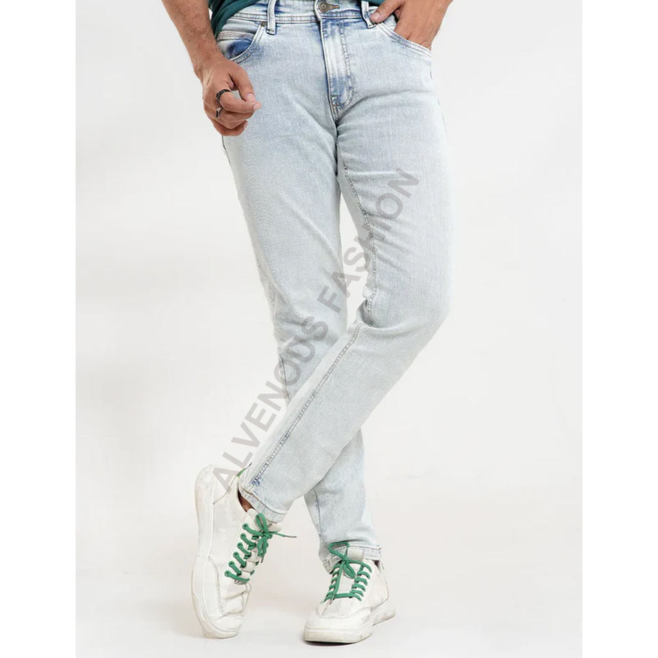 กางเกงยีนส์เอวกลางของผู้ชายเอวต่ำผ้ายีนส์ผ้านิ่มสีล้วนสำหรับฤดูใบไม้ร่วงและฤดูหนาว
