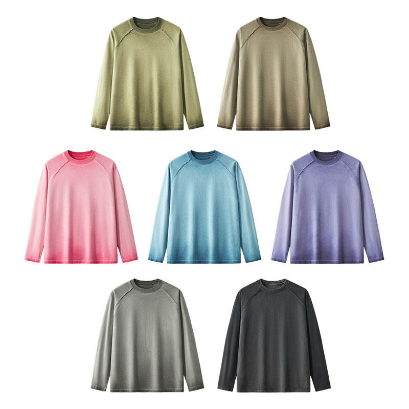 เสื้อยืดคอกลมแขนยาวสำหรับผู้ชายเสื้อยืดคอกลมแบบสวมหัวสำหรับผู้ชายเสื้อยืด270GSM สีพื้นผ้าฝ้าย100% แบบกำหนดเอง