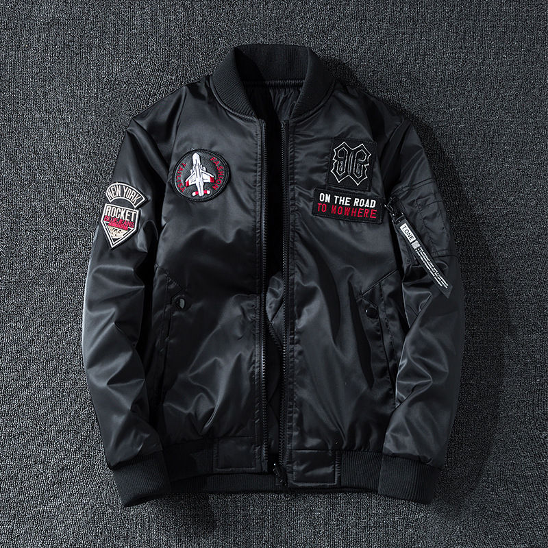 OEM Wholesale Polyester Plus Size Men's Customized Bomber Jacket Men logo Sleeve Zip up Outdoor Satin pilot Bomber Men Jacket