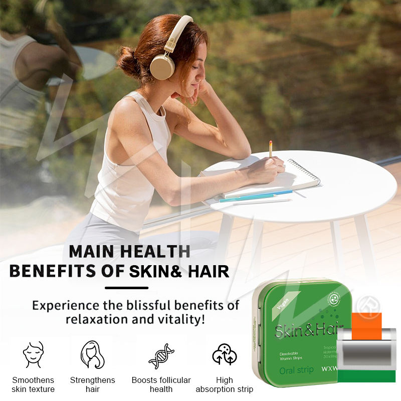แผ่นเสริมอาหารละลายในน้ำสำหรับผิวและเส้นผม ขายส่ง OEM ดูดซึมสูง แผ่นสตริปสำหรับรับประทานบำรุงผิวและเส้นผม สารสกัดจากสมุนไพรแบบฟิล์มสำหรับรับประทาน