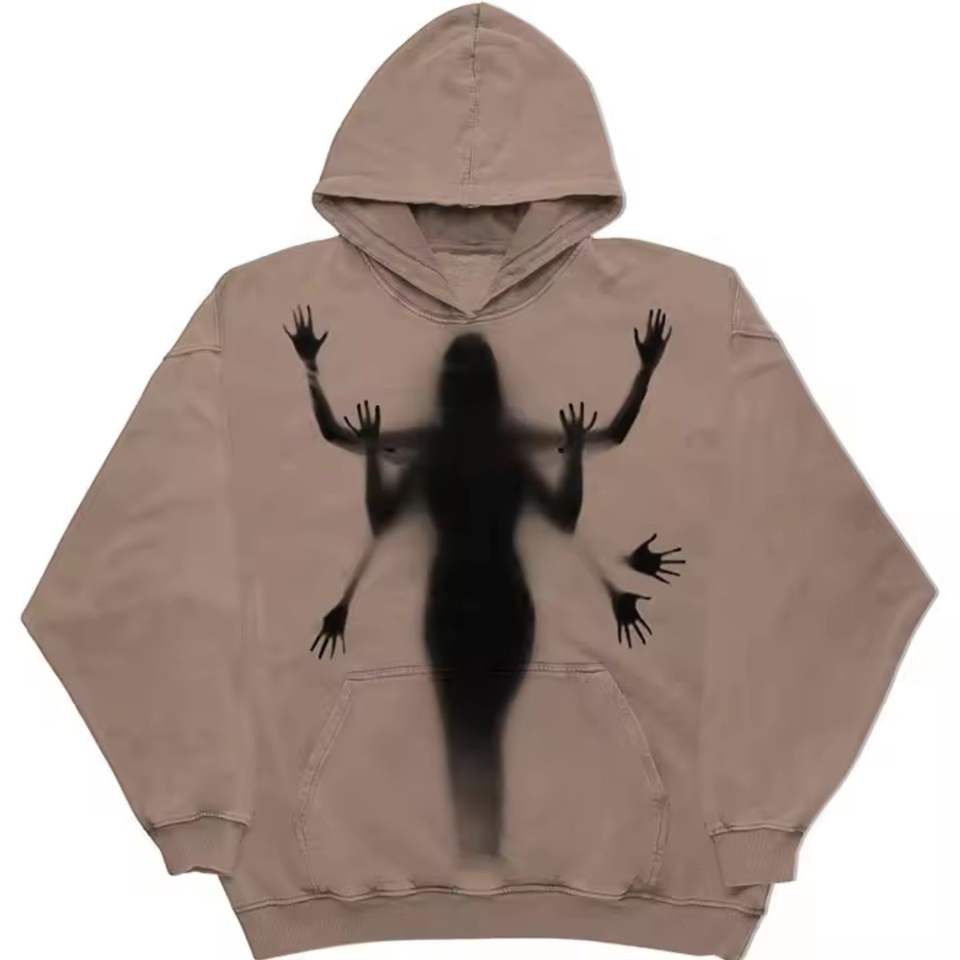 เสื้อสเวตเตอร์คอกลมใส่สบายแบบคลาสสิก380gsm มีฮู้ดคอกลมพิมพ์ลายหน้าจอ500gsm ไม่ยับและกันหด