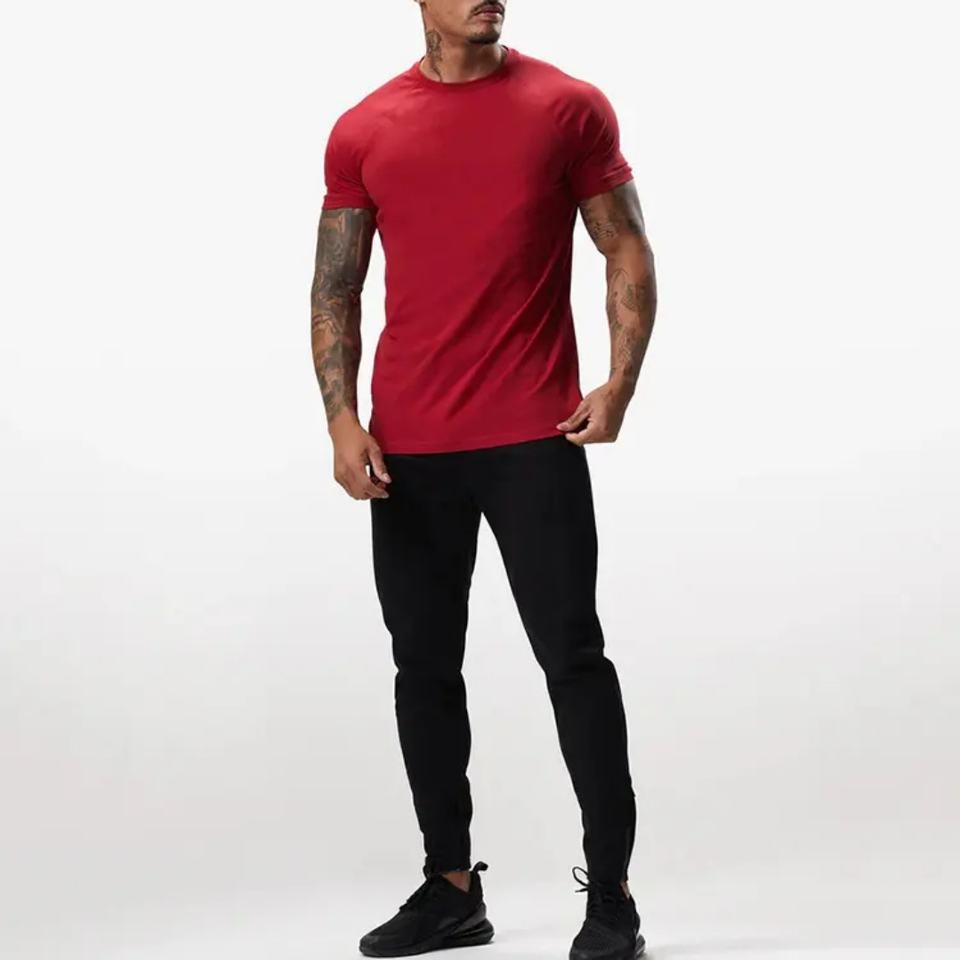 ผู้ผลิต OEM ขายส่ง เสื้อยืดคอกลมสำหรับออกกำลังกายผู้ชาย ไซส์ใหญ่ ผ้าทอซับเหงื่อ พิมพ์ลายเรียบง่าย