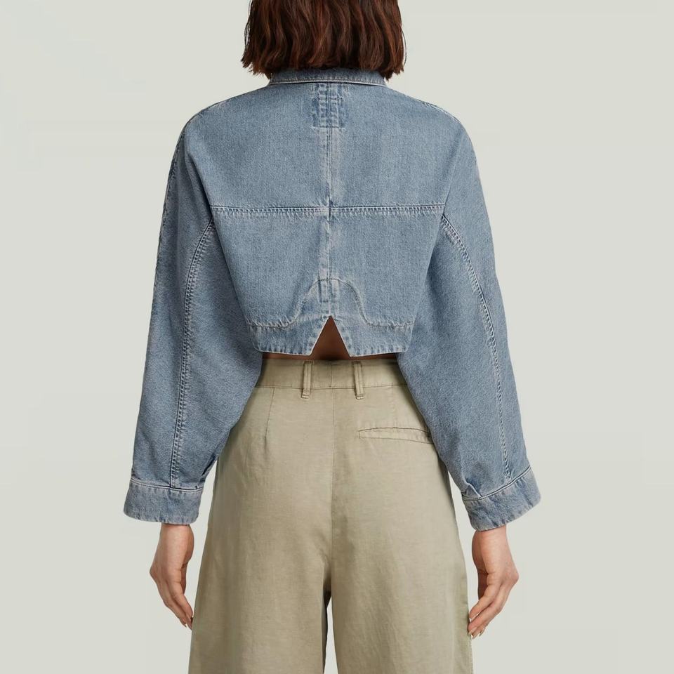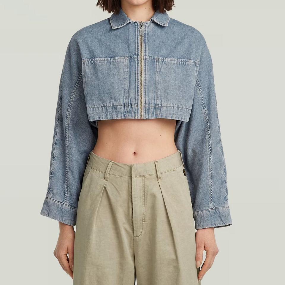 แจ็คเก็ตยีนส์วินเทจทรงหลวมแบบขายส่ง OEM ชายเสื้อฉีกขาด แขนยาว ครอปท็อป แจ็คเก็ตยีนส์ลำลองสำหรับผู้หญิง