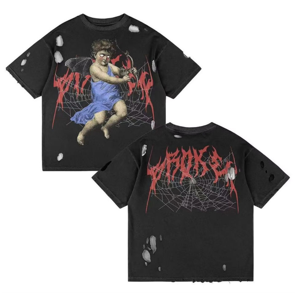เสื้อยืดโอเวอร์ไซส์สีดำพิมพ์ลายกราฟิกสำหรับผู้ชาย เสื้อยืดลำลองสั่งทำพิเศษ ขายส่ง OEM ผ้าหนานุ่ม
