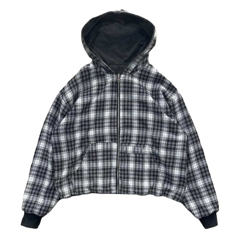 เสื้อฮู้ดดี้ผู้ชายแบบกลับด้านได้ ลายสก็อต ทรงโอเวอร์ไซส์ ผ้าคอตตอนหนา 100% สำหรับฤดูหนาว ขายส่ง OEM แบบสองชั้น พิมพ์ลายดิจิตอลคุณภาพสูง