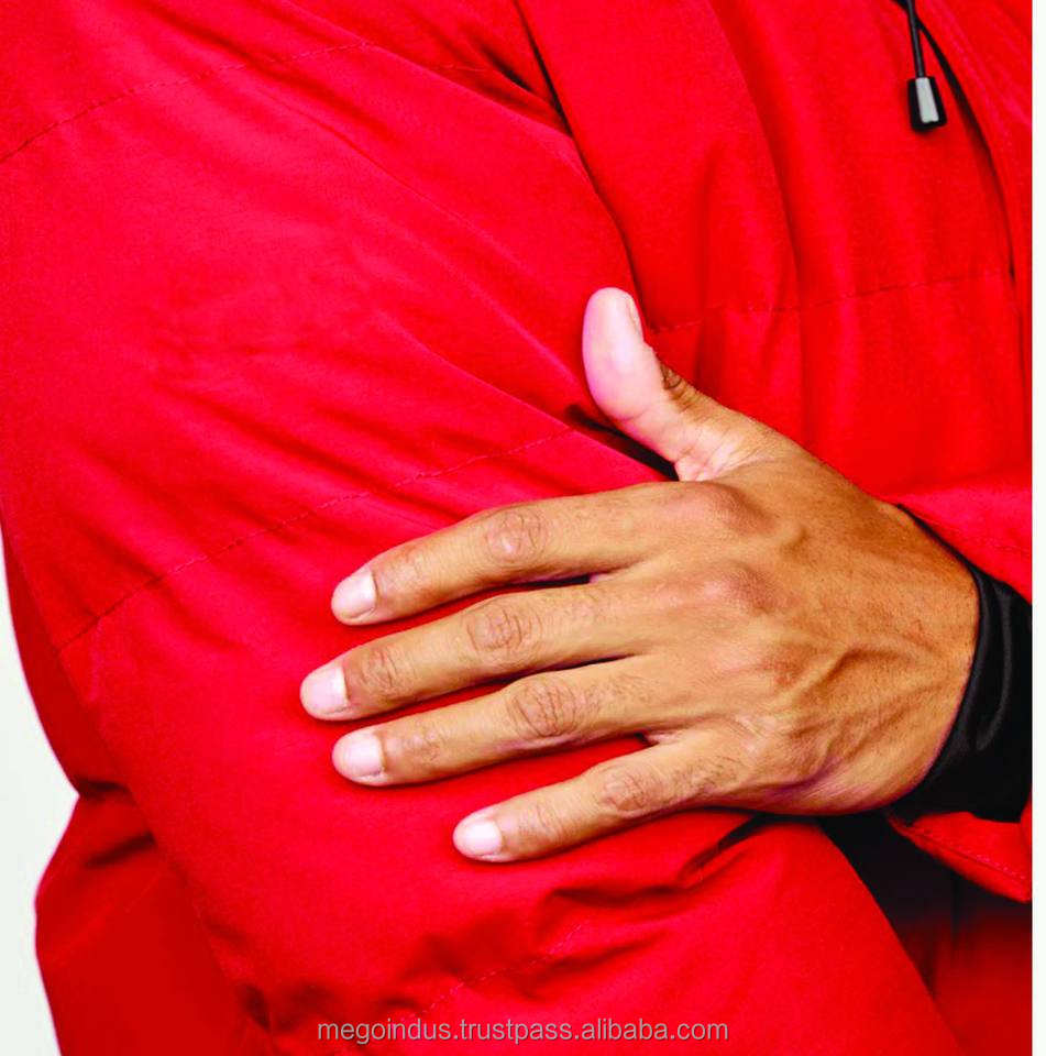 เสื้อแจ็คเก็ตกันน้ำสำหรับฤดูหนาวแบบขายส่ง OEM ไซส์ใหญ่ บุอย่างเต็มที่ ให้ความอบอุ่นสบาย ผลิตจากผ้าโพลีเอสเตอร์ 100% สีแดง ซิปเต็มตัว เทคโนโลยี Ice Tech