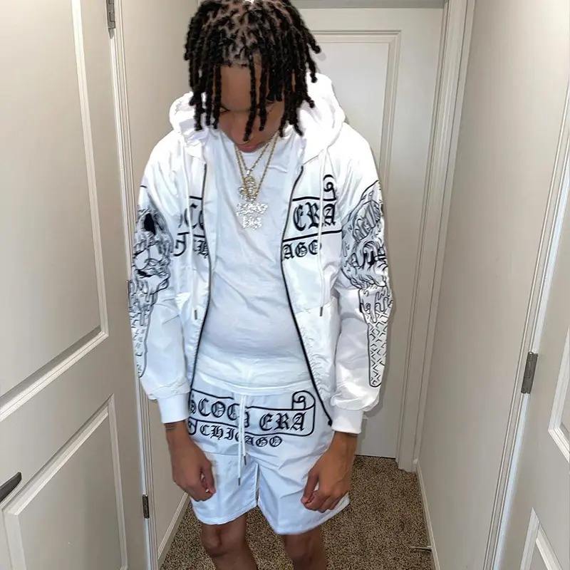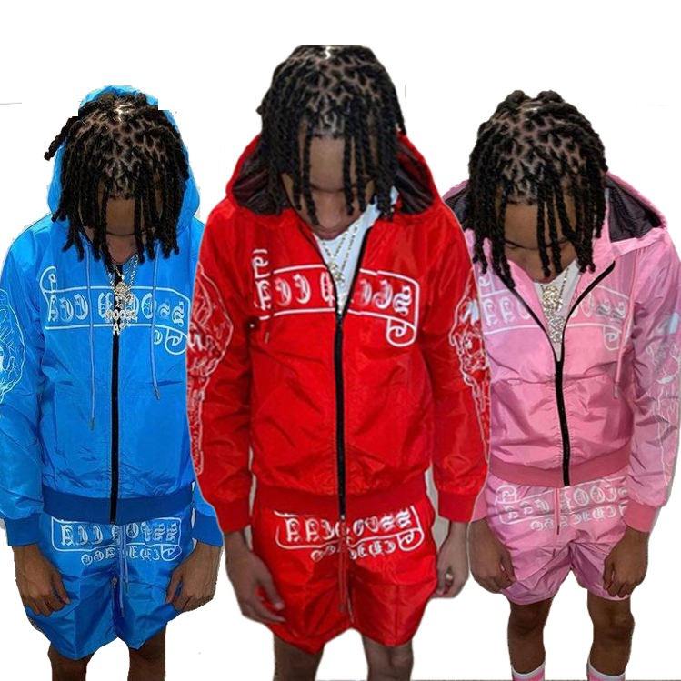 ชุดวอร์มกันลมสำหรับผู้ชายชุดวอร์มโพลีเอสเตอร์มีซิปและกางเกงขาสั้น