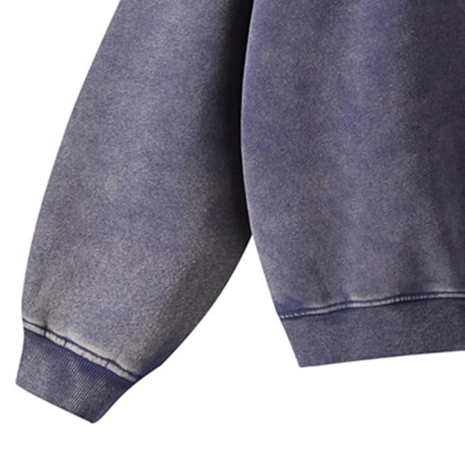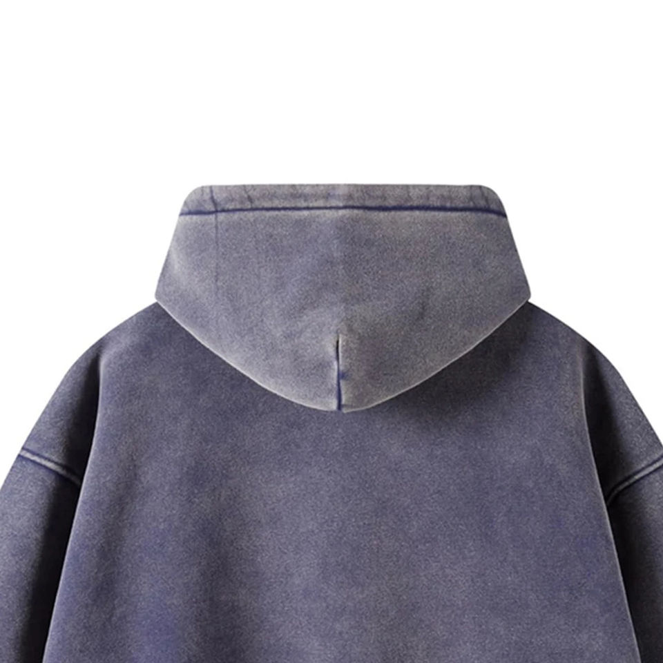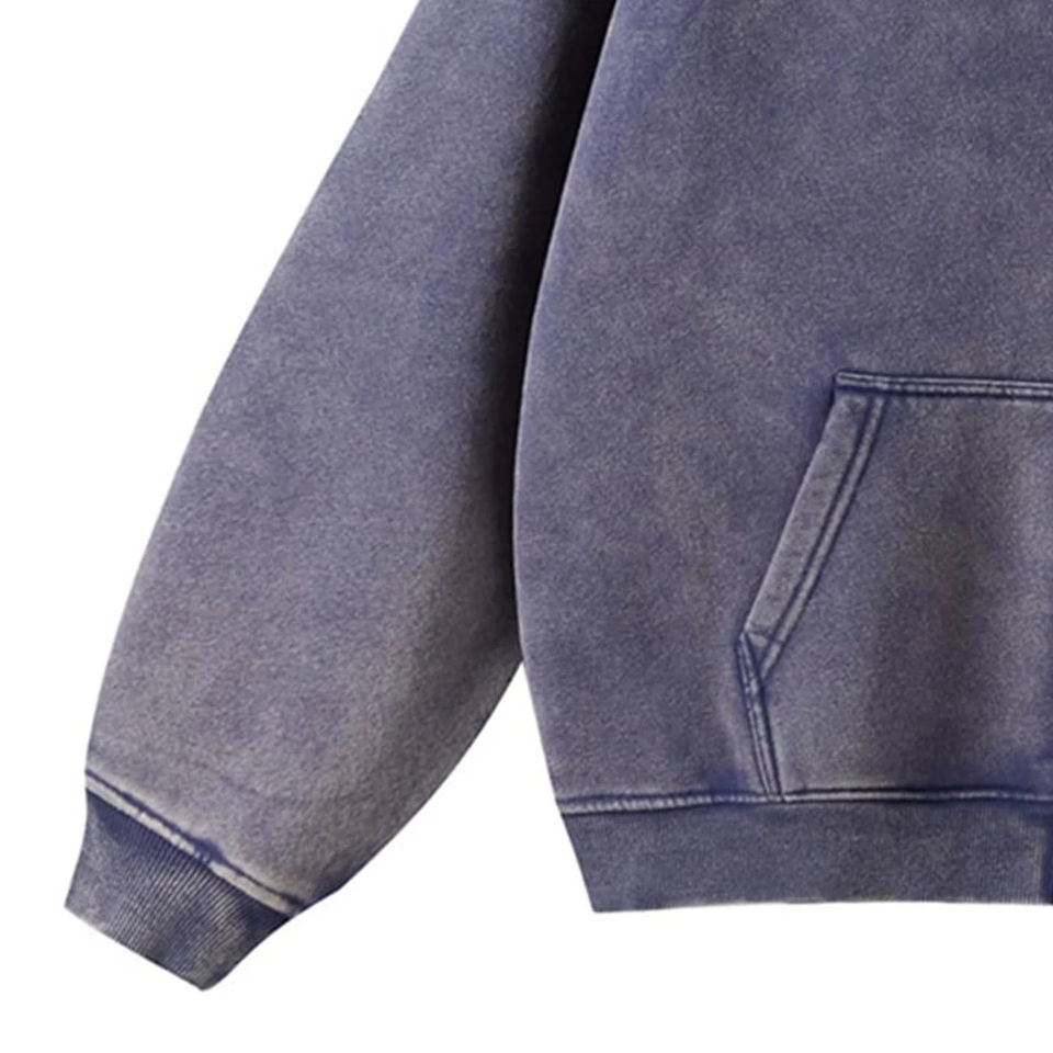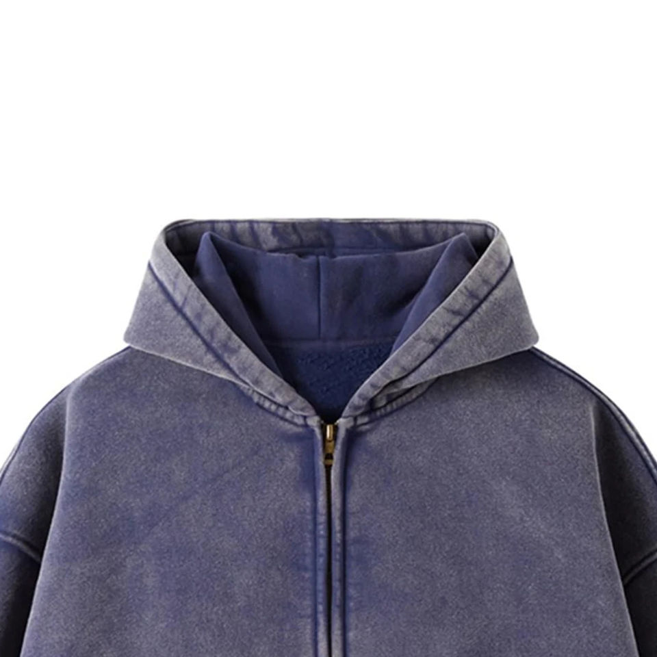 OEM Winter Acid Wash Zip-Up Hoodies 100% Cotton Oversize Custom Logo Fleece Lined Eco-Friendly Windproof High Street Style Men's