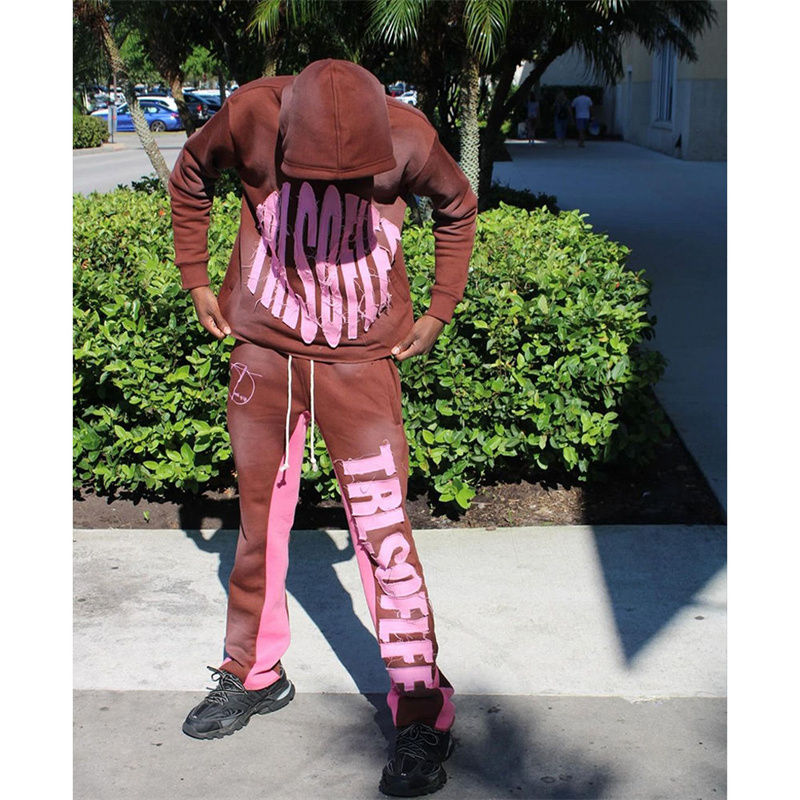 OEM Winter High Quality Cotton Heavy Weight Fleece Quick Dry Hoodie Set Custom Logo Patch Embroidery Sweatpants Tracksuit Men