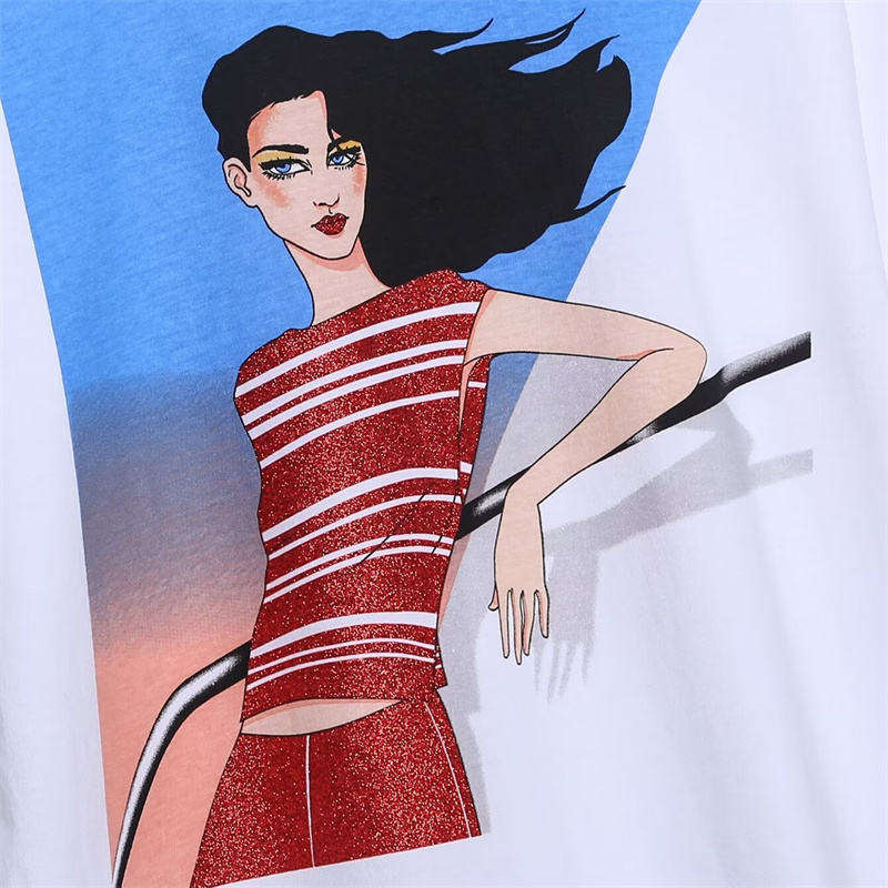 เสื้อยืดพิมพ์ลายลำลองสำหรับผู้หญิง OEM คุณภาพสูง ผ้าฝ้ายนุ่ม ระบายอากาศได้ดี ทรงโอเวอร์ไซส์ ทรงบ็อกซี่ สำหรับแบรนด์เสื้อผ้าฉลากส่วนตัว