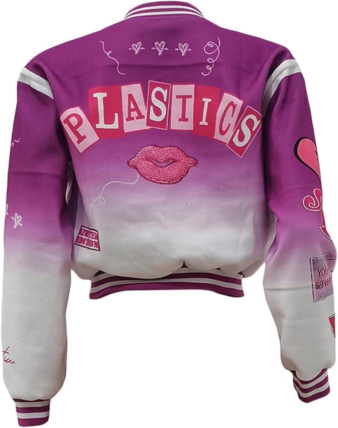 แจ็คเก็ตวาร์ซิตี้ปักลายสำหรับผู้หญิง OEM พร้อมตัวอักษร 3 มิติ และลายปัก ชายเสื้อและปลายแขนแบบริบ โลโก้สั่งทำได้ ขายส่งขั้นต่ำ 50 ชิ้น