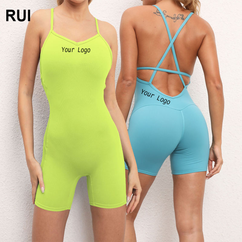 ชุดออกกำลังกายสำหรับผู้หญิง OEM ชุดกีฬา ชุดรอมเปอร์เซ็กซี่โชว์หลัง ชุดจั๊มสูทสปอร์ต ชุดโยคะ ผ้าสแปนเด็กซ์/ไนลอน แห้งเร็ว