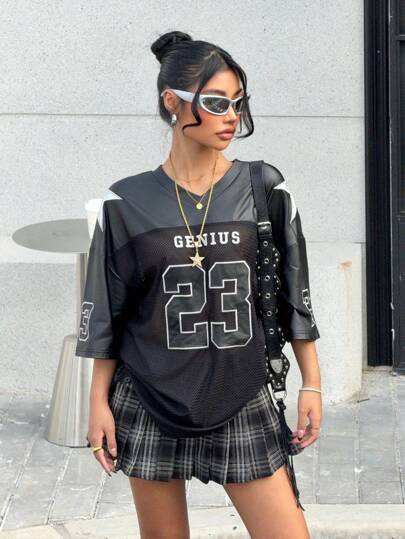 เสื้อเจอร์ซีย์สตรีทแวร์ผ้าตาข่ายพิมพ์ลาย OEM รุ่น 23 ทรงหลวม แฟชั่นกราฟิก ผู้จำหน่ายขายส่ง